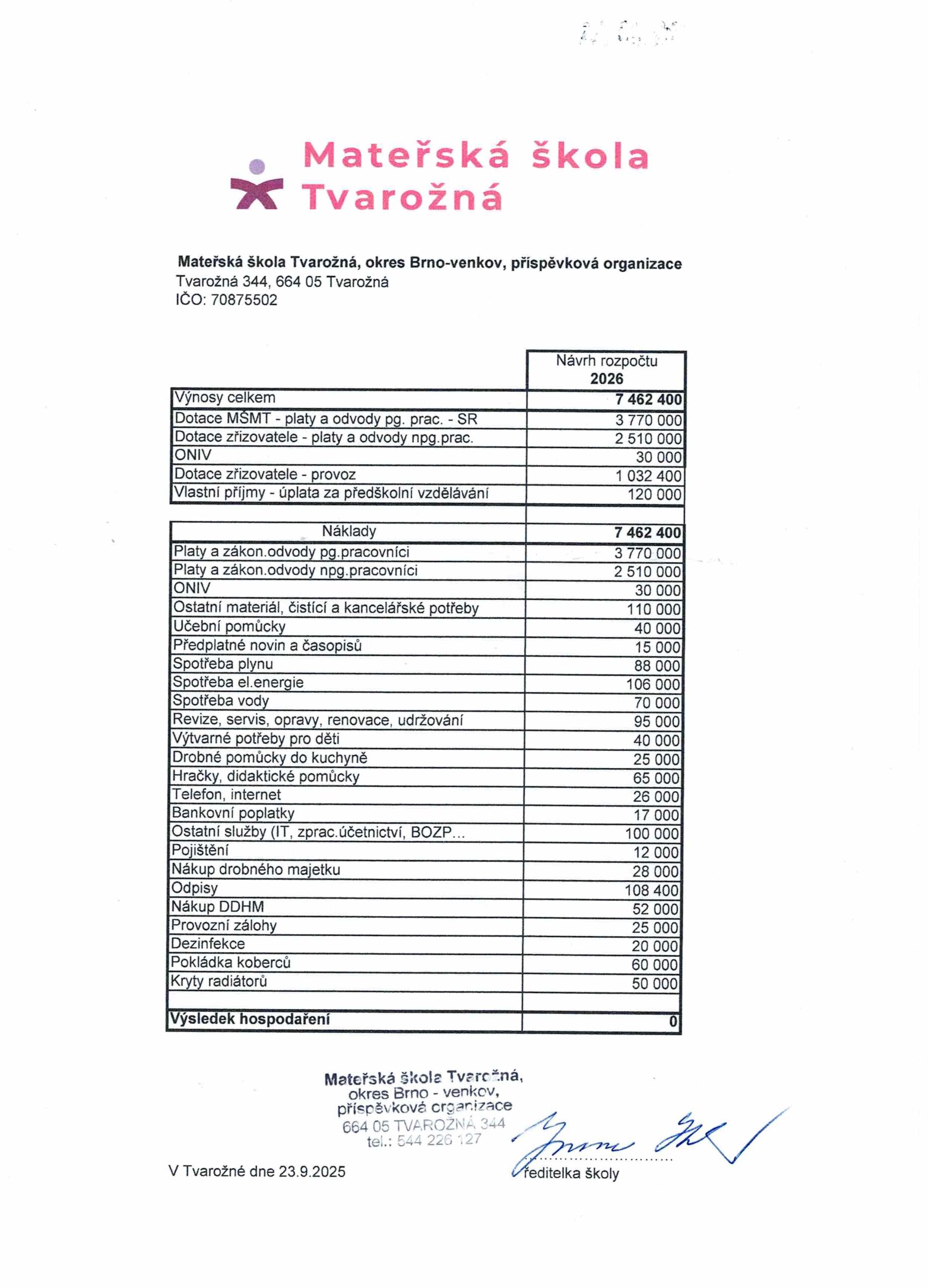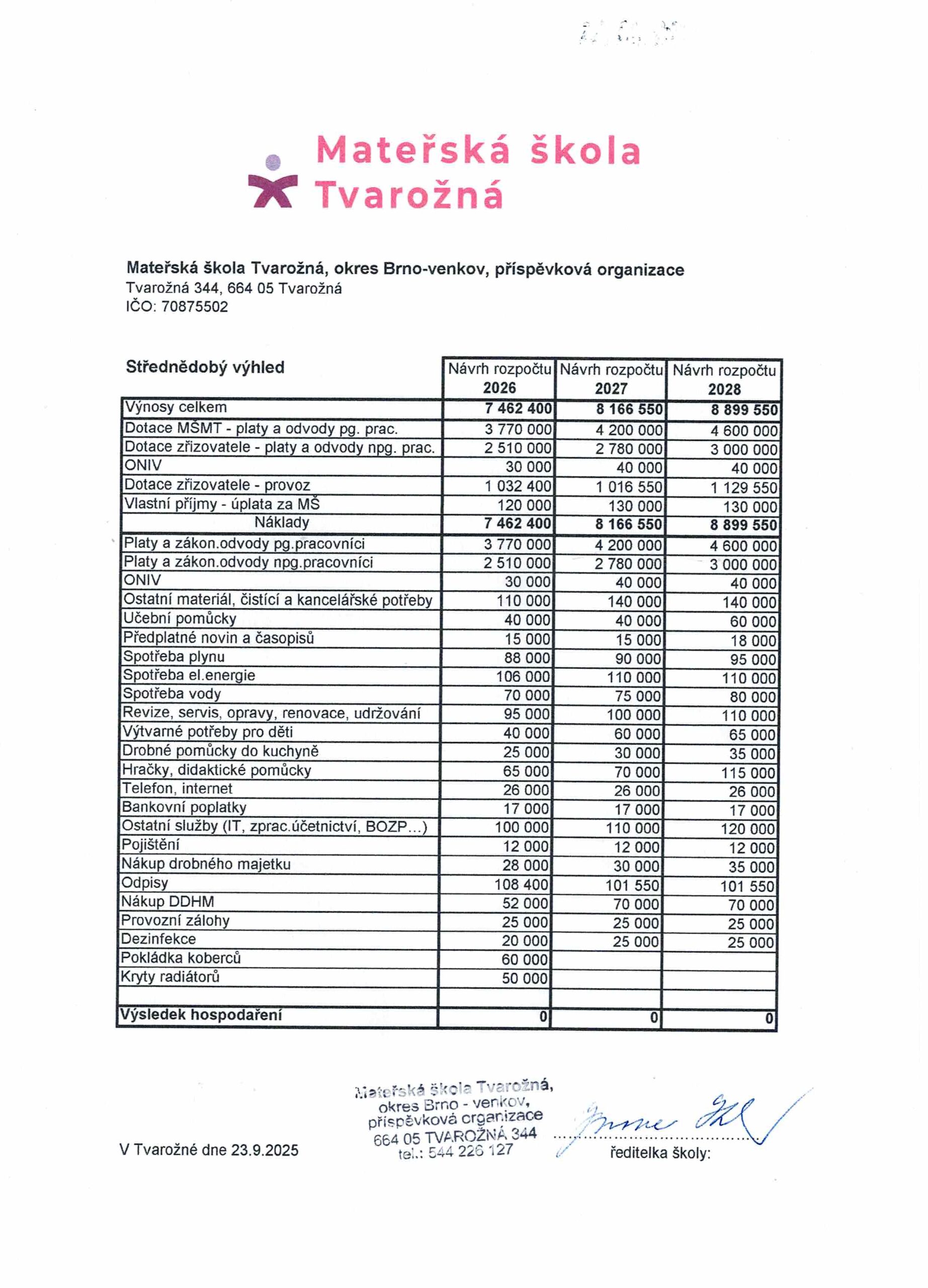 Rozpočet MŠ 2026-2028 Rozpočet MŠ 2026Stáhnout Střednědobí výhled MŠ 2026-2028Stáhnout Odpisová plán MŠ 2026Stáhnout Související obrázky: